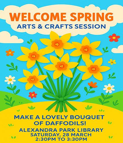 Join us for a fun and exciting arts and craft session. Make a bouquet of daffodils to welcome spring.